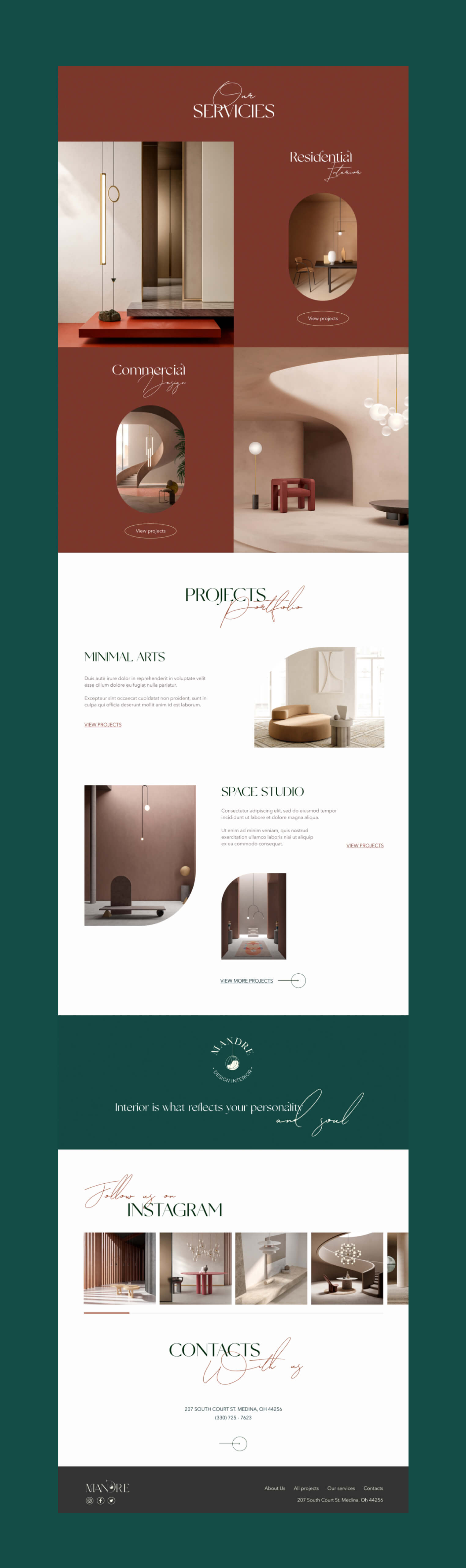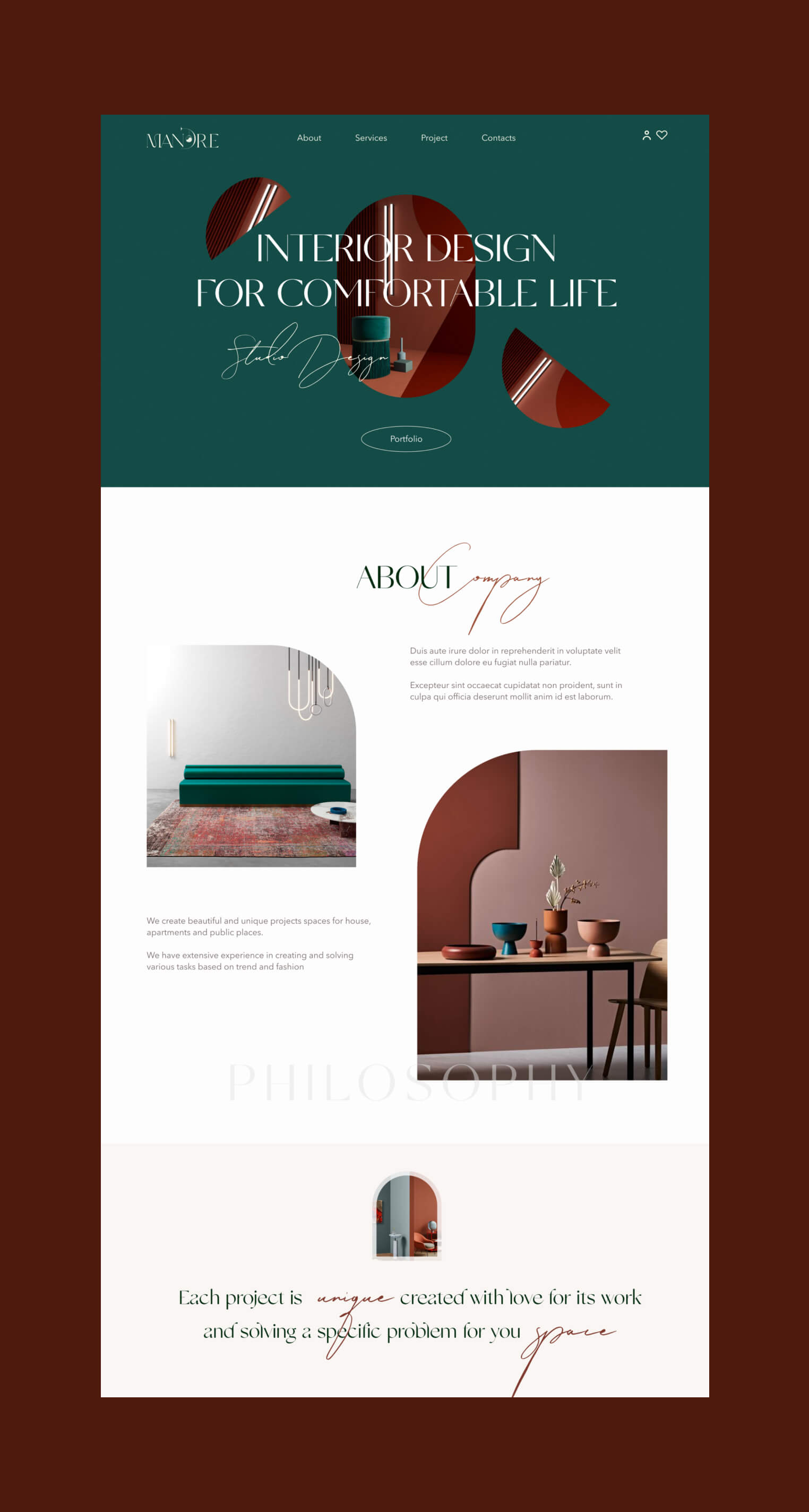 Development of a logo and website for the Mandre brand. Interior design company.