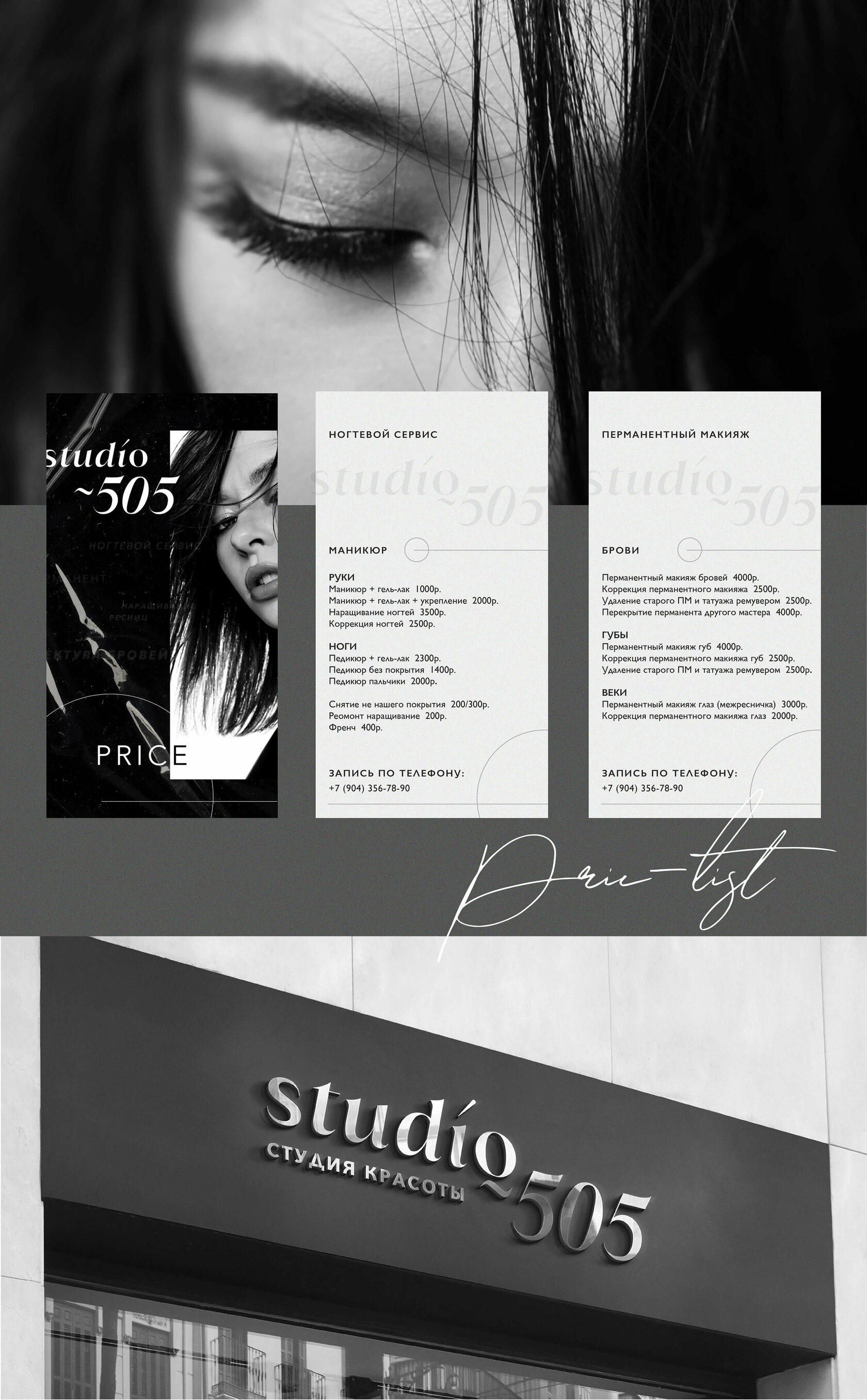 Develop a visual concept for logo and corporate style for beauty studio “Studio ~505”
